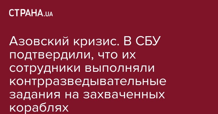 "Офицеры украинской спецслужбы, которые были захвачены российской стороной в Керченском проливе 25 ноября, выполняли служебные задания по контрразведывательному обеспечению подразделения ВМС Украины, как это предусмотрено законом о СБУ", - заявили в спецслужбе.