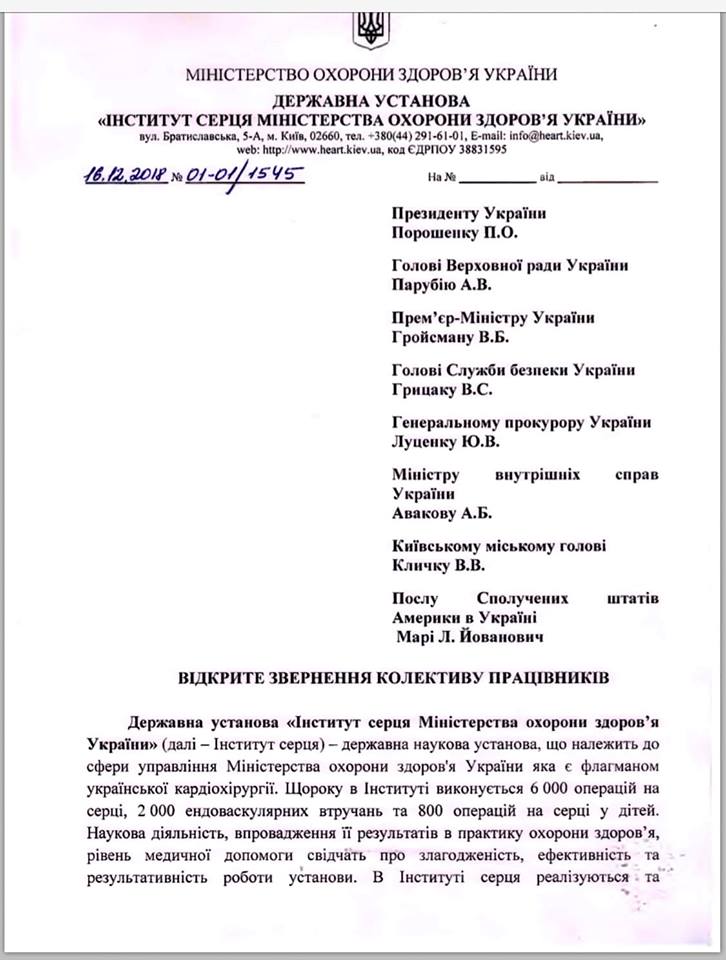 "Открытое обращение коллектива Государственного учреждения "Институт сердца Министерства здравоохранения".