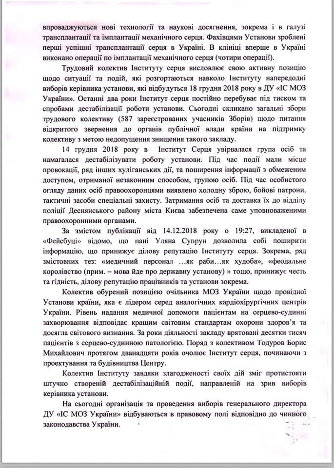 Супрун подчеркивает, что во вторник, 18 декабря, в Институте сердца состоятся выборы главного врача. И Тодуров "очень боится потерять свое феодальное княжество, если решил готовить врачей быть его актерами".