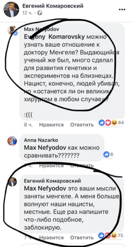 После событий 14 декабря сообщество опять разделилось. В когорте известных врачей поддержали Тодурова - его начал защищать педиатр Евгений Комаровский. А вот в лагере "реформаторов" ополчились на хирурга. Дошло до того, что замминистра финансов Макс Нефедов, вообще не имеющий отношения к медицине, сравнил Тодурова с доктором Менгеле - нацистским врачом, который ставил опыты на живых людях.
