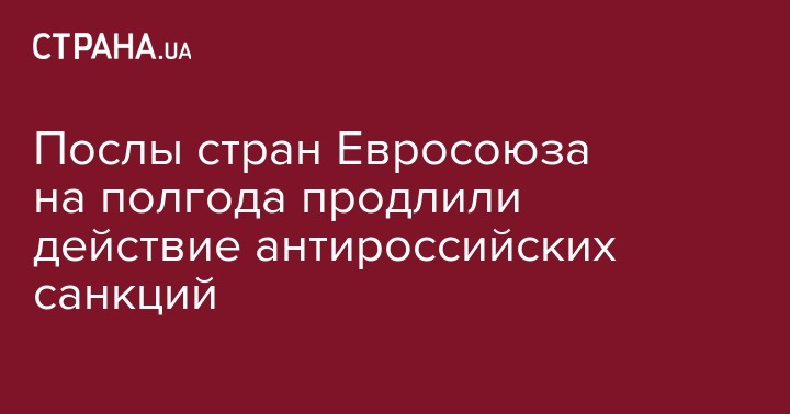 "Послы ЕС только что дали "зеленый свет" продолжению экономических санкций против России еще на полгода. Официальное сообщение должно быть позже на этой неделе", - сообщил в своем микроблоге журналист.