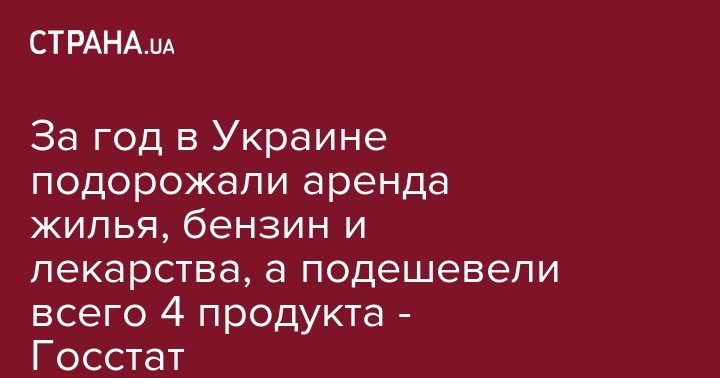 За год в Украине подорожали аренда жилья, бензин и лекарства, а подешевели всего 4 продукта - Госстат