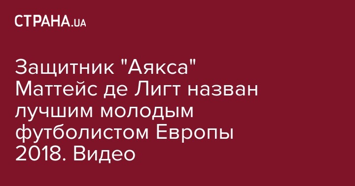 Защитник "Аякса" Маттейс де Лигт получил награду Golden Boy в 2018 году в качестве лучшего игрока не старше 21 года. Престижная награда учреждена газетой Tuttosport.