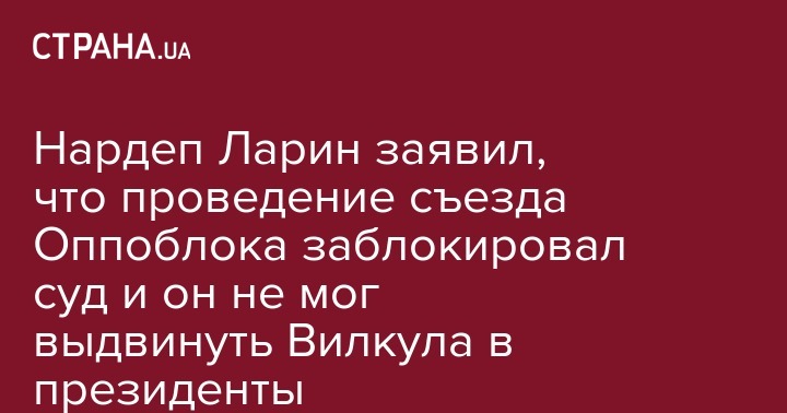 По иску нардепа, сопредседателя политисполкома партии "Оппозиционный блок" Сергея Ларина суд запретил Минюсту регистрировать изменения в уставе партии, поэтому съезд Оппоблока 15 декабря является нелигитимным, а нардеп Александр Вилкул не может считаться выдвинутым кандидатом в президенты.