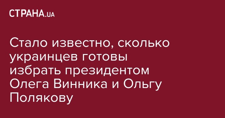 За Олега Винника как кандидата на главный пост страны готовы были бы проголосовать 1,8% граждан, почти столько же за Ольгу Полякову (1,7%). За Олега Скрипку и Верку Сердючку отдали голоса бы по 1,1% избирателей, а за Павла Зиброва – 0,9%. Еще 0,3% готовы поддержать Иво Бобула, который, к слову, изначально собирался баллотироваться