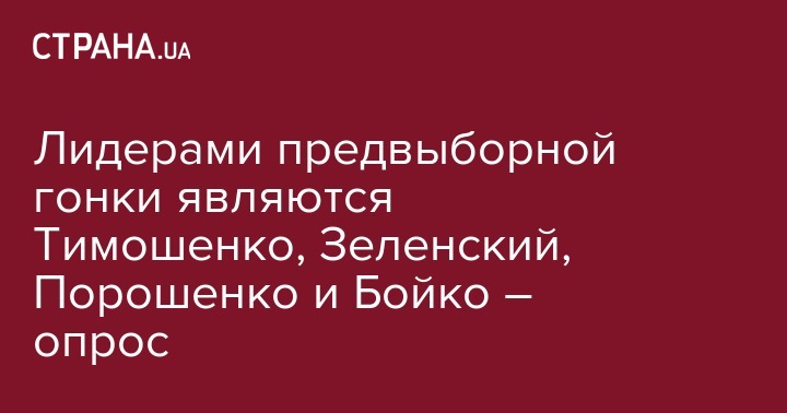 Лидерами предвыборной гонки являются Тимошенко, Зеленский, Порошенко и Бойко – опрос