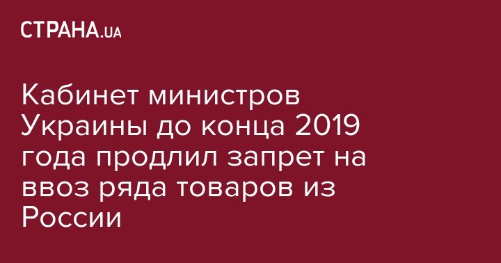 Кабинет министров Украины до конца 2019 года продлил запрет на ввоз ряда товаров из России