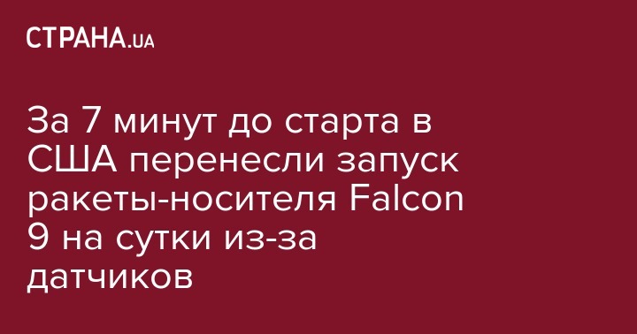 За 7 минут до старта в США перенесли запуск ракеты-носителя Falcon 9 на сутки из-за датчиков