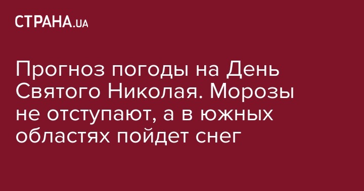 В День Святого Николая, который отмечается сегодня, практически по всей стране будет сохраняться одинаковая температура: днем -3...-8, ночью -7...-13 градусов. Киев - не исключение. В столице продолжают царить морозы, поэтому днем стоит подготовиться к температуре до -8 градусов. Снега в среду не предвидится.
