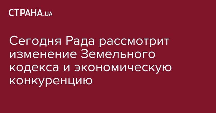 Сегодня Рада рассмотрит изменение Земельного кодекса и экономическую конкуренцию