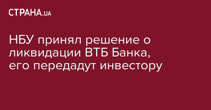 НБУ принял решение о ликвидации ВТБ Банка, его передадут инвестору