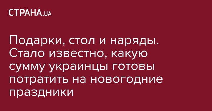 Итого получается, что на подарки, новогодний стол и наряды среднестатистический украинец потратит в этом году 8957 грн (это порядка 320 долларов, или чуть менее 285 евро). При этом в крупных городах средние траты составят 10 328 грн, а в небольших - 7380 грн.