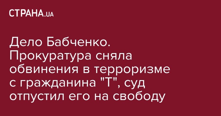 Дело Бабченко. Прокуратура сняла обвинения в терроризме с гражданина "Т", суд отпустил его на свободу