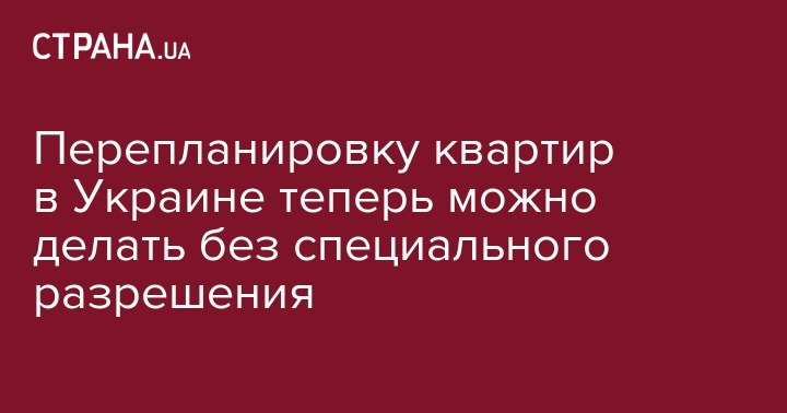 Теперь в Украине для перепланировки квартиры без вмешательства в несущие конструкции не нужно получать разрешение Госархстройинспекции.
