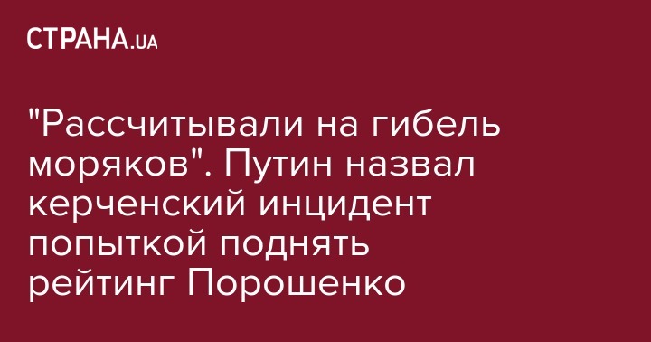 "Вы констатировали: это была провокация. Да, верно. Зачем нашим украинским партнерам это было? Там выборы. Действующему президенту надо поднимать рейтинг. У Юлии Владимировны сейчас более 20%. У Зелинского (именно так произнес фамилию - прим. ред.), Бойко, Порошенко - 12%. Так вот: Керчь - плохой способ поднятия рейтинга. Был расчет на то, что кто-то из моряков погибнет. Но, слава Богу, этого не случилось", - сказал Путин.