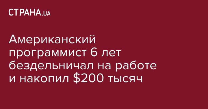 Американский программист 6 лет числился официальным сотрудником крупной фирмы в Калифорнии, однако на работе ничего не делал. Об этом сообщает Новый Регион