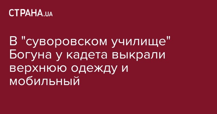 В Киевском военном лицее имени Ивана Богуна (бывшее Киевское суворовское военное училище) неизвестные обокрали курсанта, похитив зимнюю куртку и недешевый мобильный телефон. Об этом "Стране" сообщили собственные источники в МВД.