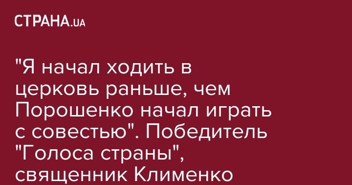 "Я начал ходить в церковь раньше, чем Порошенко начал играть с совестью". Победитель "Голоса страны", священник Клименко прокомментировал создание ПЦУ