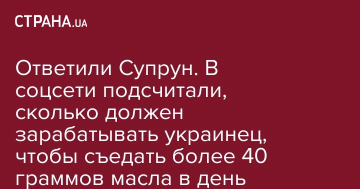 Ответили Супрун. В соцсети подсчитали, сколько должен зарабатывать украинец, чтобы съедать более 40 граммов масла в день