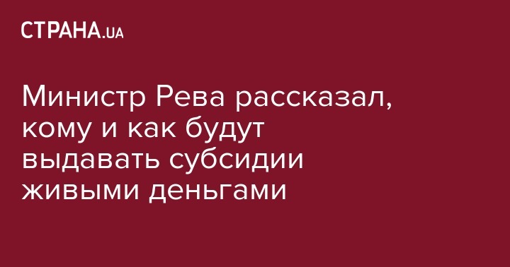 Министр Рева рассказал, кому и как будут выдавать субсидии живыми деньгами