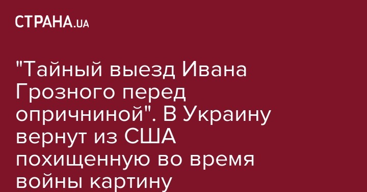 В Украину из США вернут вывезенную во время Великой Отечественной войны картину. Будет возвращено произведение художника Михаила Панина "Тайный выезд Ивана Грозного перед опричниной", которое похитили из Днепропетровского художественного музея.
