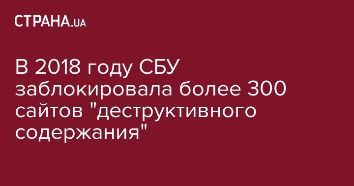 Служба безопасности Украины в 2018 году заблокировала более 300 сайтов, которые РФ использовала для "ведения гибридной войны против нашей страны". Об этом сообщает сайт СБУ.