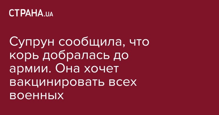 Она подчеркнула, что вакцинация в Украине является вопросом национальной безопасности. "Без эффективной вакцинации не может быть сильного войска. На уровне президента будем инициировать мероприятия по вакцинации всех военных. И это очень важная вещь", - подчеркнула Супрун.