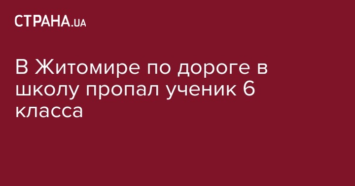 В Житомире исчез ученик шестого класса одной из городских школ. Об этом сообщает УНН со ссылкой на источники в правоохранительных органах.