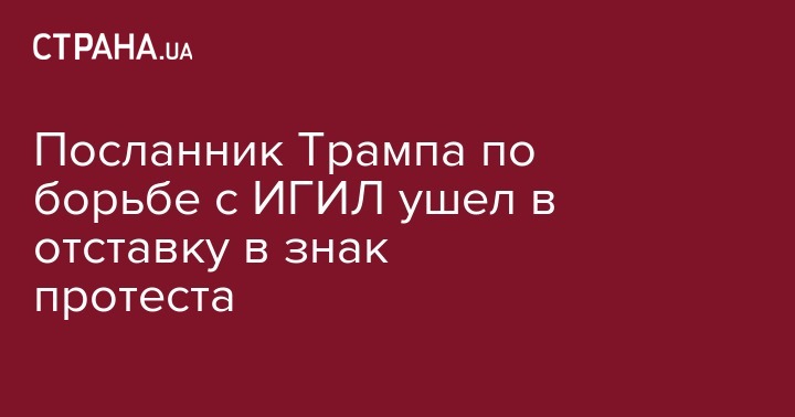 Спецпредставитель президента США по вопросам взаимодействия с другими странами в борьбе с ИГИЛ Бретт Макгурк подал в отставку, вслед за главой Пентагона. Об этом сообщило в субботу, 22 декабря, со ссылкой на официальных лиц информационное агентство Associated Press.