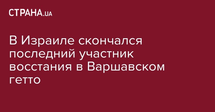 В Израиле умер последний выживший участник восстания в Варшавском гетто Симха Ротем (Ратайзер) по прозвищу "Казик". Ему было 94 года, передает Deutsche welle.