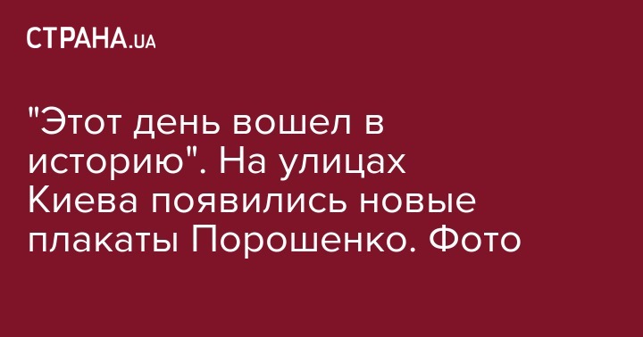 "Этот день вошел в историю". На улицах Киева появились новые плакаты Порошенко. Фото