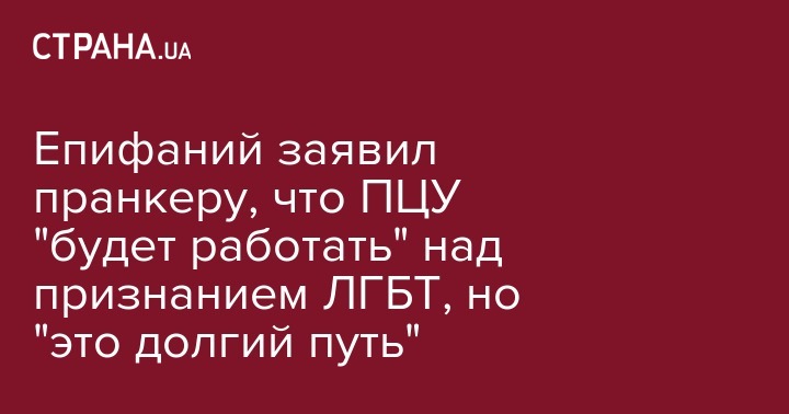 Украина будет "отходить от консервативной русской традиции", в том числе и в плане неприятия ЛГБТ, но этот процесс будет постепенным. Об этом заявил глава ПЦУ Епифаний в разговоре с российским пранкером Лексусом, который представился европолитиком Дэвидом Макалистером, председателем комитета иностранных дел Европейского парламента.