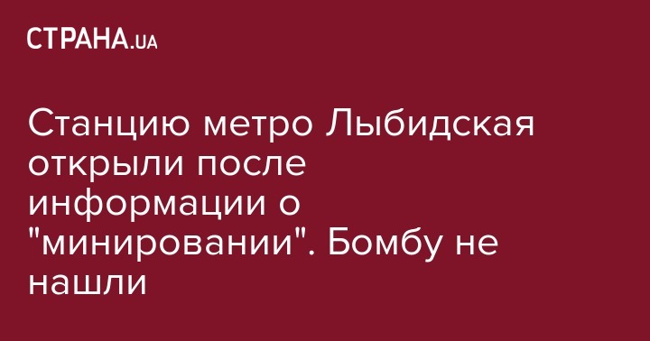 "Станция "Лыбидская" осмотрена. Взрывоопасных предметов не обнаружено. Работаем в обычном режиме", - говорится в сообщении.