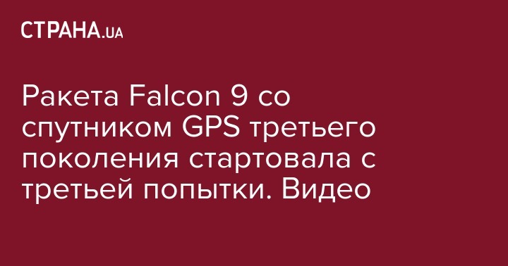 Ракета Falcon 9 со спутником GPS третьего поколения стартовала с третьей попытки. Видео