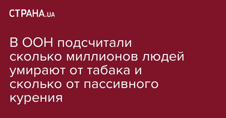 Из-за эпидемии табакокурения ежегодно умирают шесть миллионов человек. Шестьсот тысяч из них являлись пассивными курильщиками. Об этом передает "Радио Свобода" со ссылкой на данные ООН.