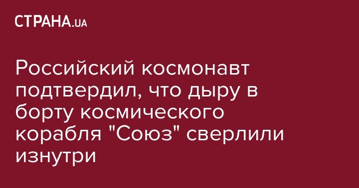 Российский космонавт подтвердил, что дыру в борту космического корабля "Союз" сверлили изнутри
