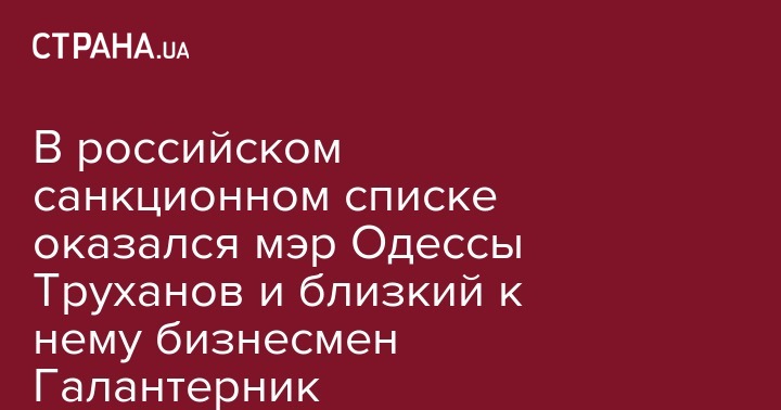 В российском санкционном списке оказался мэр Одессы Труханов и близкий к нему бизнесмен Галантерник