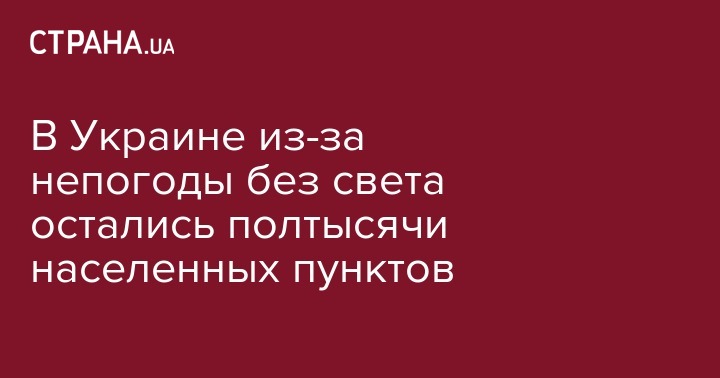 В результате ухудшения погодных условий без электричества остались 556 населенных пунктов в девяти областях Украины.