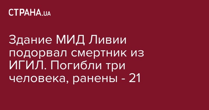 В результате теракта в здании Министерства иностранных дел Ливии в Триполи погибли три человека, минимум 21 получил ранения. Об этом сообщило само министерство, пишет Libya Herald.