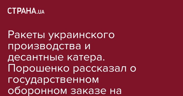 Ракеты украинского производства и десантные катера. Порошенко рассказал о государственном оборонном заказе на 2019 год