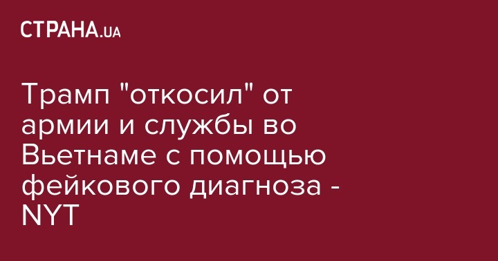 Президент США Дональд Трамп 50 лет назад избежал службы в армии благодаря фиктивному диагнозу. Документ был предоставлен врачом, который арендовал у отца Трампа офис. Об этом говорится в исследовании американского издания The New York Times, обнародованном в среду.