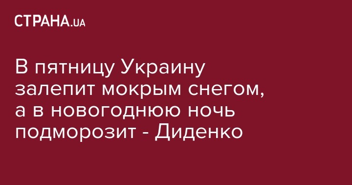 В Украину в пятницу, 28 декабря, из Европы придет циклон Uta, который принесет дожди и мокрый снег. Лишь на крайнем востоке Украины будет наблюдаться просто плотная облачностьь. Об этом сообщила на своей странице в Facebook синоптик Наталья Диденко.