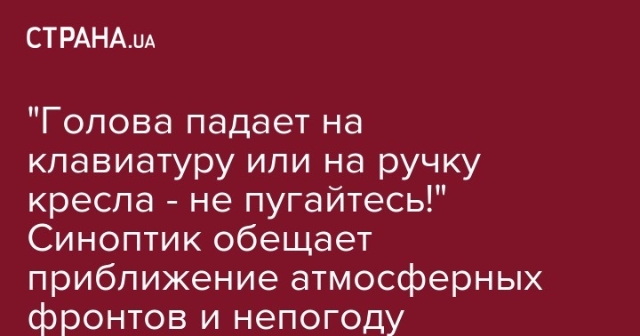 "Вдруг у кого-то голова падет на клавиатуру или на ручку кресла - не пугайтесь! Такую сонливость и раскоординированность нагоняют грядущие атмосферные фронты", успокаивает Диденко.