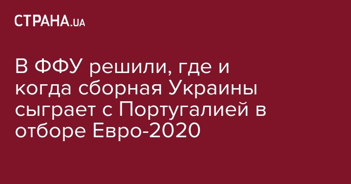 Сборная Украины сыграет с командой Португалии в отборочном турнире Евро-2020 в Киеве 14 октября 2019 года. Как сообщает пресс-служба Федерации футбола Украины, соответствующее решение было принято на заседании исполкома ФФУ в четверг. Матч состоится на НСК "Олимпийский", начало в 21:45.