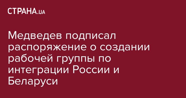 28 декабря премьер-министр РФ Дмитрий Медведев подписал распоряжение о создании рабочей группы, которая будет заниматься подготовкой предложений по интеграции России и Беларуси. Об этом пишет РИА Новости.