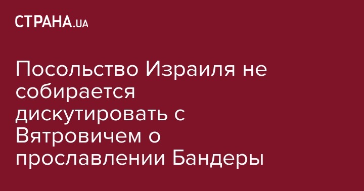 Посольство Израиля не собирается дискутировать с Вятровичем о прославлении Бандеры