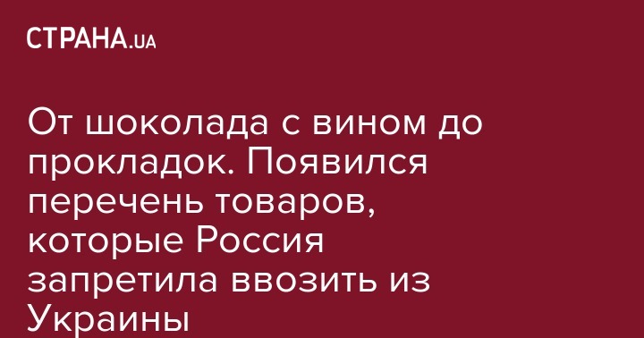 От шоколада с вином до прокладок. Появился перечень товаров, которые Россия запретила ввозить из Украины