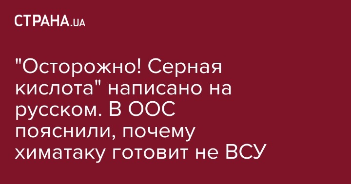 "Осторожно! Серная кислота" написано на русском. В ООС пояснили, почему химатаку готовит не ВСУ