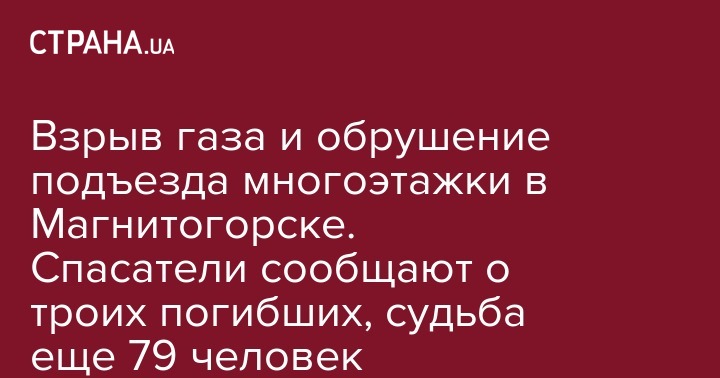 В понедельник, 31 декабря, около 03:00 по киевскому времени в российском Магнитогорске произошло ЧП. В одном из жилых домов взорвался газ, после этого один из его подъездов обрушился. Об этом пишет РИА Новости