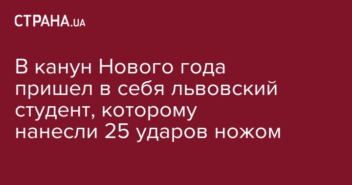 21-летний студент Львовской политехники Юрий накануне нового года пришел в сознание после трехнедельной комы, в которую его отправили 25 ножевых ранений. Медики приравнивают это к чуду, поскольку у парня была повреждена сонная артерия, а с такой травмой большинство людей умирают прямо на месте ЧП. Об этом сообщает ZАXID.NET.